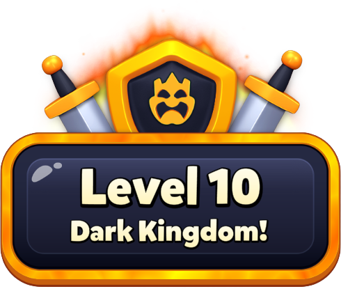 In Dark Kingdom levels, your goal is to beat Dark King in Dark Kingdom.You can defeat the Dark King in his own kingdom and win Dark Kingdom levels by destroying all of the enemies and the buildings. You destroy items by hitting them.While some items require making matches on the board to hit them, some are destroyed only by hitting with power-ups. You collect more rewards when you beat a Kingdom level. You can view an item's health from its health bar. Kingdom levels might have multiple fields.The next stage begins as each game field is cleared. The number of stages and progress are displayed in the top-right of the screen under the number of moves.