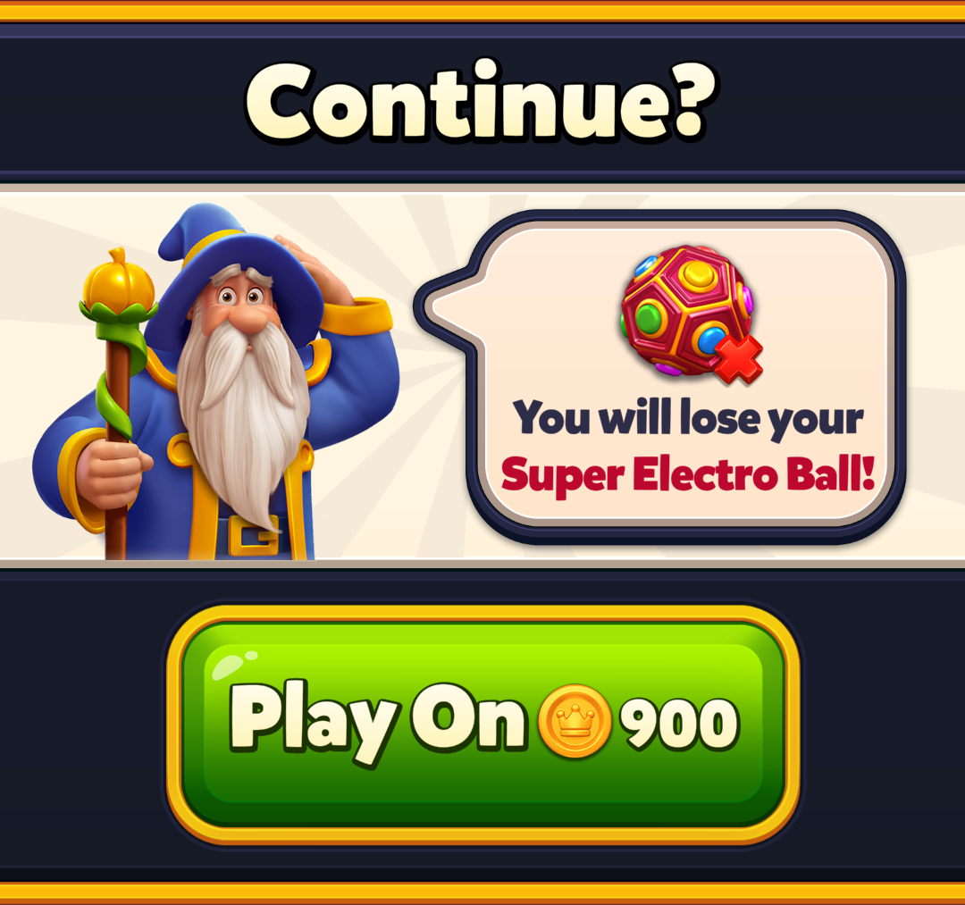 - When you fail to beat a level, Super Electro Ball resets. You need to start over and beat 10 levels or rounds to reactivate the Super Electro Ball.